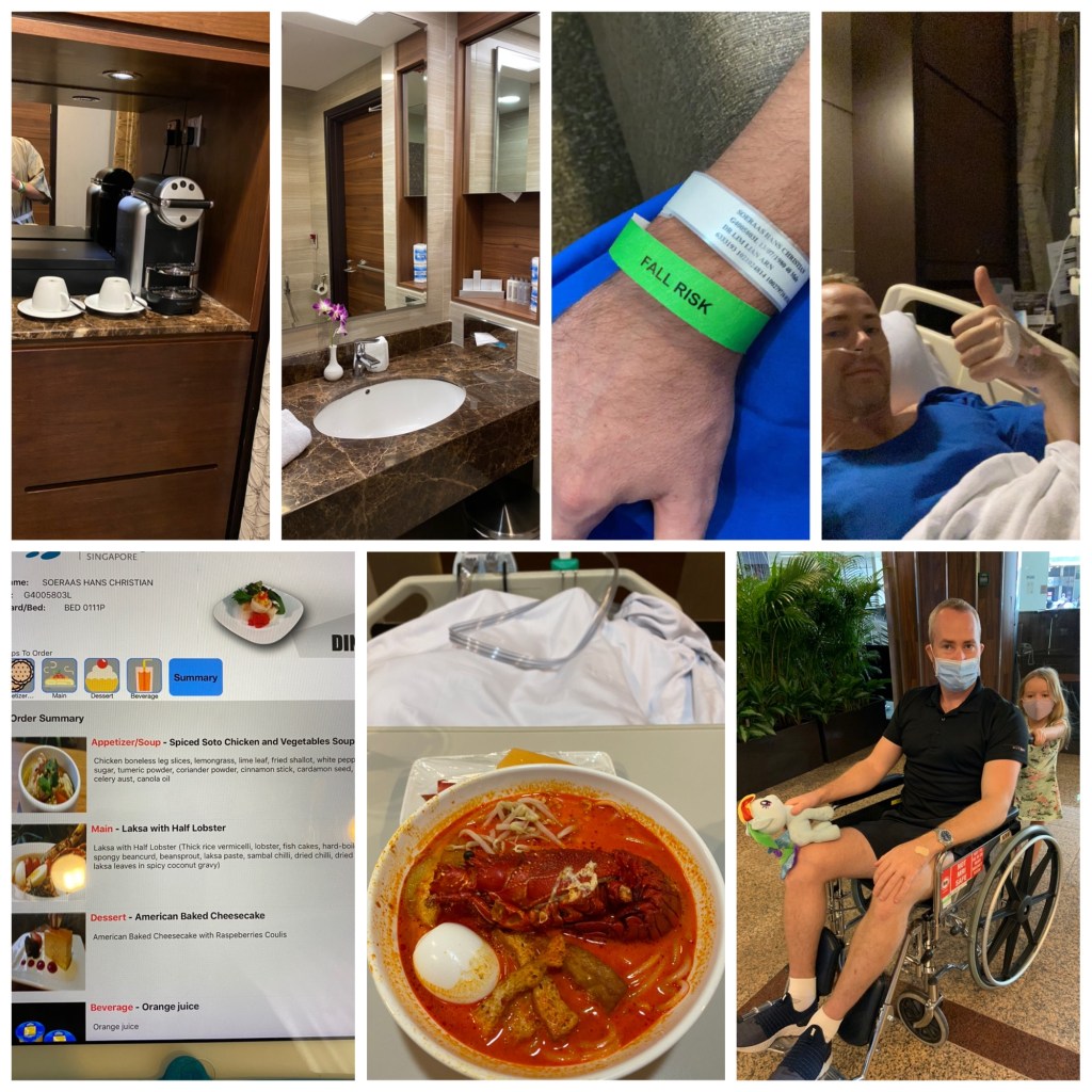 Hans Christian har slitt med en vond hofte i noe tid (samme hofte for de som måtte lure) og nå var den blitt et så stort hinder i hverdagen at tiden var inne for å få gjort noe med det. Han har derfor tilbrakt det siste døgnet på Gleneagles private sykehus her i Singapore. Noen av dere deler kanskje min oppfatning av at dette høres ut som et litt snobbete sted. I så tilfelle har du helt rett😉