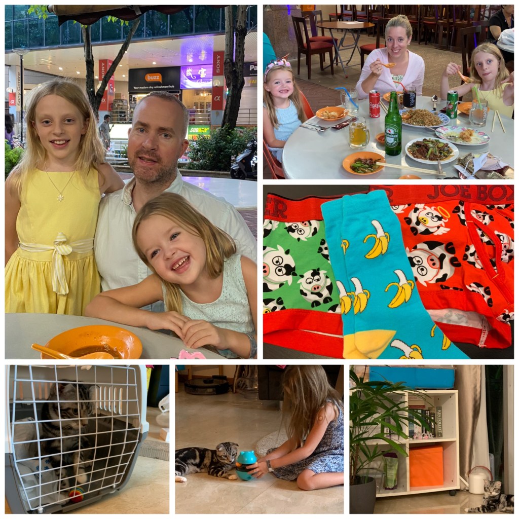 Her i Singapore er det ikke lov å selge katter direkte fra oppdretter, det skal gå via en dyrebutikk. Helt motsatt av hvordan det fungerer hjemme. Han har derfor bodd i et bur i butikken i nærmere to måneder. Det merkers. Har en veldig hengiven, kosete og leken. Men har en ikke vant med høyde og det å hoppe opp på ting. Han holder seg derfor utelukkende på gulvet, og hopper ned umiddelbart om du setter ham på sofaen eller en seng. Til Julia sin store frustrasjon. Hun var klar for å ha ham i sengen dag én. I stedet sov han under sofaen første natten. Men han sov hele natten da, det får være godt nok for nå.