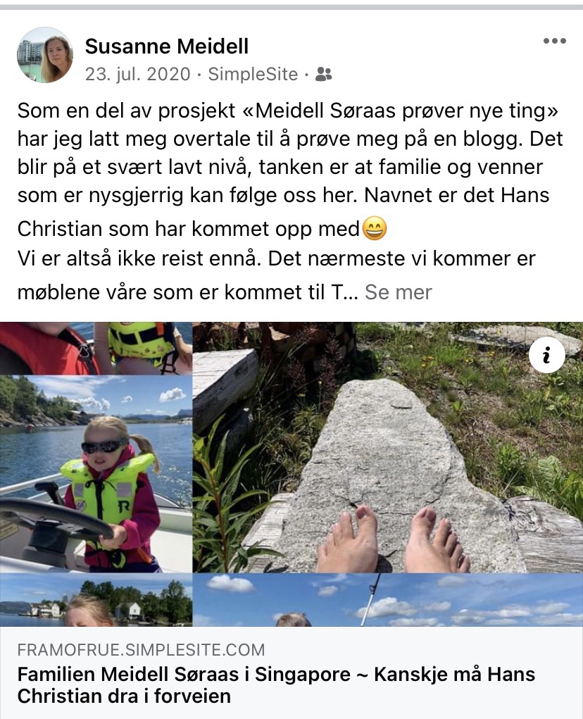 Det var da jeg begynte å tenke at en blogg hadde vært en god ide. Med litt hjelp fra vår gode venn Fredrik, som er betydelig flinkere på sånne ting enn det jeg er, var bloggen plutselig oppe og gikk på rekordtid. Så da spørsmålene kom igjen begynte jeg å henvise dem til bloggen. Og det funket😃