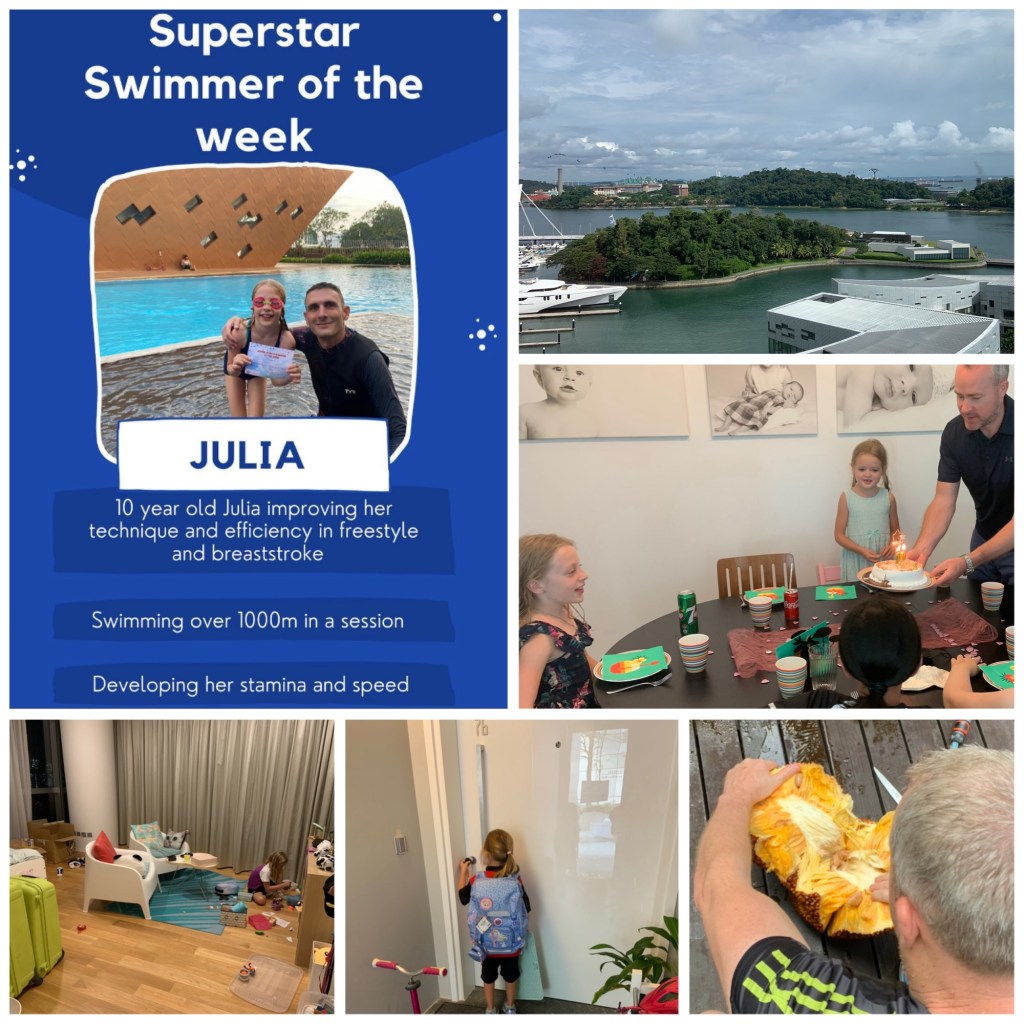 Bare for å være på den sikre siden hadde vi lagt inn et lite 4 timers (litt forsinket) bursdagsselskap for Julia forrige søndag🙈 Da hadde hun 4 venninner på besøk, to norske og to fra klassen. Det ble ikke like mye pynt og egen bakst som det normalt ville vært, men jentene storkoste seg likevel. De herjet i bassenget, laget diverse danser og spise pizza, kake og skillingsboller. Jubilanten var i hvert fall storfornøyd.