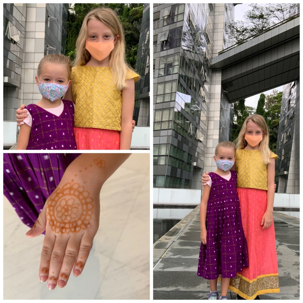 Ellers har det ikke skjedd så forferdelig mye i det siste. Ut fra bildene jeg postet forrige uke har dere sikkert skjønt at vi har feiret Deepawali, hinduenes viktigste høytid. Jeg føler at det ikke er så lenge siden vi gjorde det, men så har det altså gått ett år😬 Som i fjor tok vi turen til Little India for å se på alle lysene, folkene og den fine fargerike dekorasjonen. Nytt av året var at alle jentene gikk for henna-tatovering. Det vil si, Nora hadde alt en som hun hadde fått noen dager i forveien av sin indiske hjelpelærer, da de feiret Deepawali på skolen.
