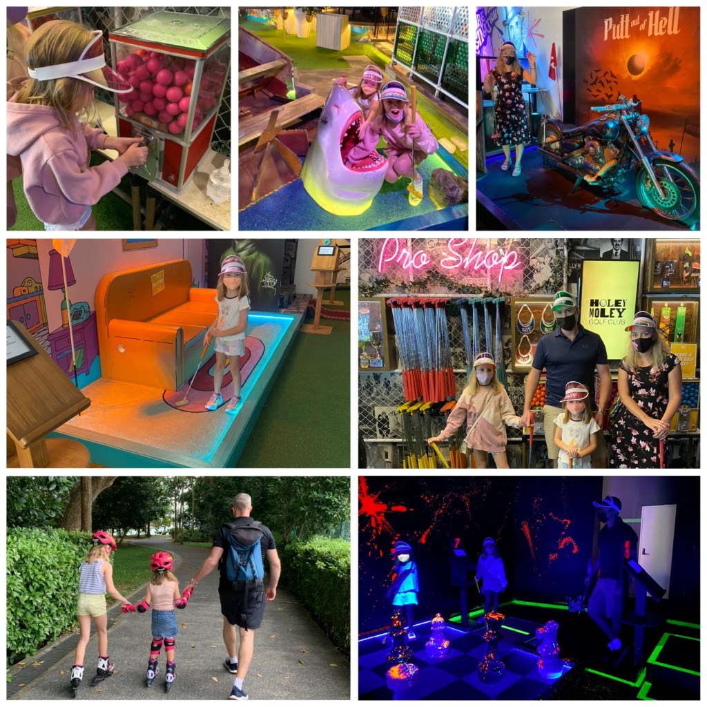 På søndag gjorde vi noe som alle synes var skikkelig gøy. Vi dro på Holey Moley Gulf Club og spilte minigolf. Vi gikk for 18 hull og matchende solskjerm på hele familien. Her var det masse gøye baner, den ene mer spektakulær enn den andre. Vi var innom både stuen til The Simpsons, Willy Wonka’s sjokoladefabrikk, tetris og et eget Glow in the dark-rom. For å nevne noe. Og for å bevare den gode stemningen valgte vi å ikke telle poeng😄