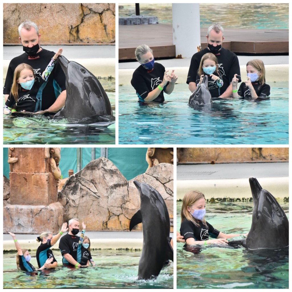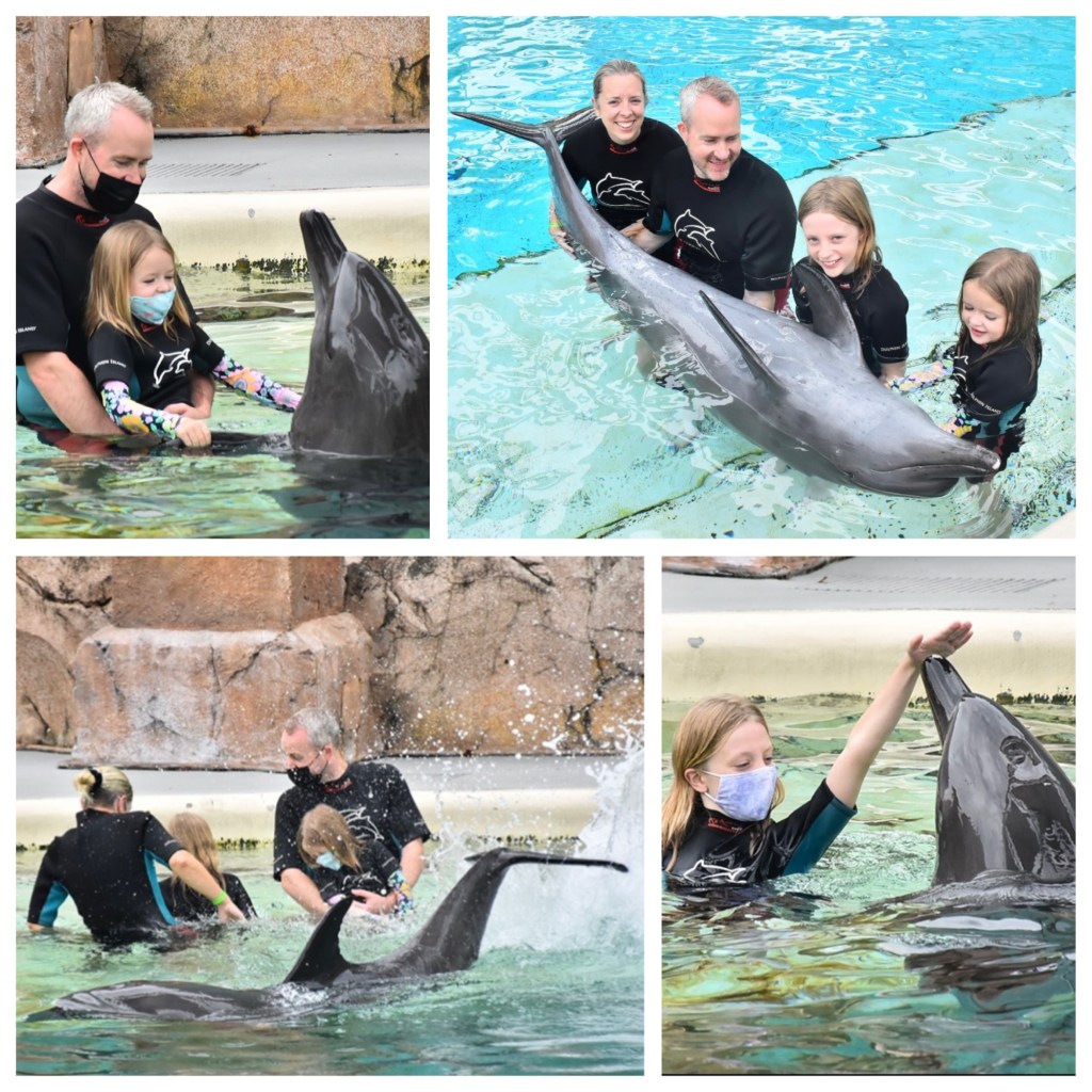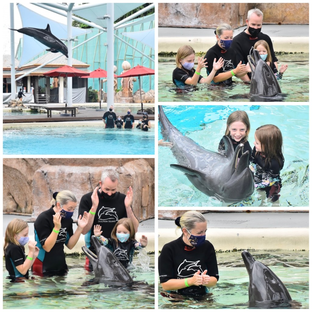 Men dagens aktivitet var feriens store happening. Noe vi har gleder oss til og snakket om lenge. I dag har vi nemlig badet med delfiner🐬 Det var rett og slett utrolig gøy! I nesten en time var vi ute i vannet, nesten alene, bare omgitt av flere titalls delfiner (fordelt på flere basseng) og trenere.
