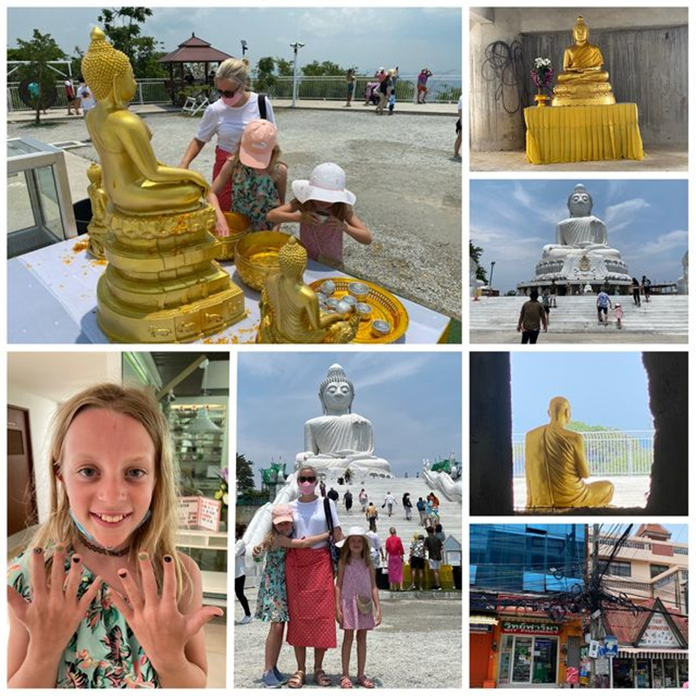 Her besøkte vi buddaen på «toppen» av Phuket. Legg merke til mitt fine skjørt. Og ikke minst Julia sin fine manikyr, hun og venninnen var på skjønnhetssalong på egenhånd🤩