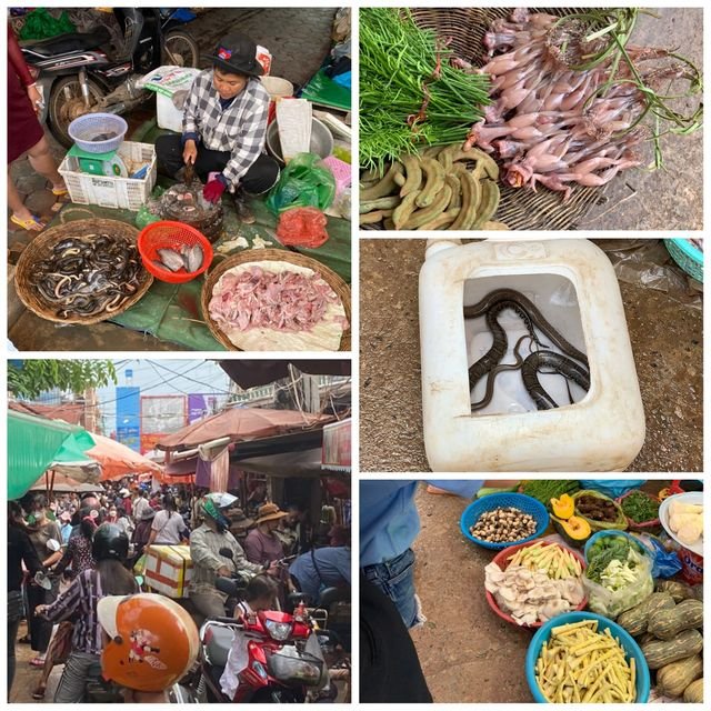 På markedet fikk vi også hilst på konen til guiden vår. Seks dagen i uken står hun opp rundt kl. 04 for å hente fisk som hun selger på markedet. I løpet av en normal dag selger hun 5 til 10 kg fisk, noe som gir en inntekt på etpar amerikanske dollar (den mest brukte valutaen i Kambodsja). Det som eventuelt blir til overs blir familiens middag, eventuelt byttet mot andre varer hos andre selgere.