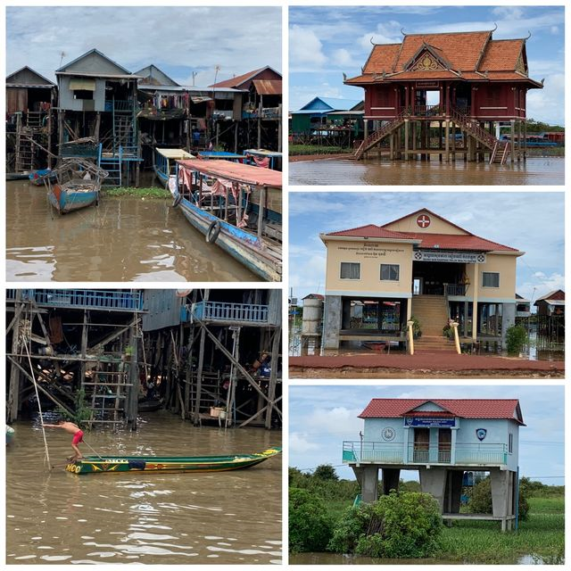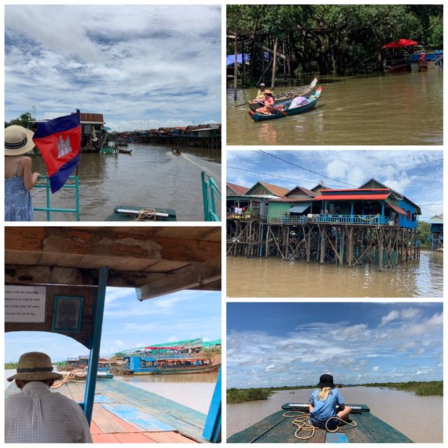 Markedet var bare en liten avstikker, dagens hovedmål var den flytende landsbyen Kompong Phluk. Kambodsja er et veldig flatt land med et nokså fuktig klima. Over halve året regnes som regntid, noe som fører til at mye av landområdene ofte står under vann. Befolkningen har derfor måtte tilpasse seg. På markene dyrkes det i stor grad ris, og som vi så fra huset til sjåføren vår, har mange hus høye fundamenter for at vann ikke skal komme inn. Men i enkelte områder har de tatt det hele et hakk lenger og bygget husene på høye stylter. På den måten kan de bo langs elvene uten å bli påvirket i særlig grad av den varierende vannstanden. Det er nettopp det de har gjort i Kompong Phluk. Der lever de nesten hele livet på vannet.