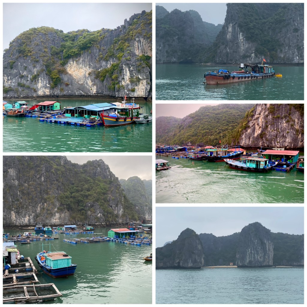 På vei tilbake passerte vi gjennom en flytende landsby. Landsbyen går tilbake 7000 (!) år, og før covid bodde det om lag 2000 mennesker her. Nå var folketallet nede i 1000. Skole hadde de ikke, så barna ble plukket opp med «skolebåt» på morgenen og kjørt hjem igjen på ettermiddagen. Men det så ut til å være et yrende liv der ennå, og om man ønsket kunne man overnatte i enkelte av hyttene. Karaoke hadde de og. Som alle asiatiske steder med respekt for seg selv😉
