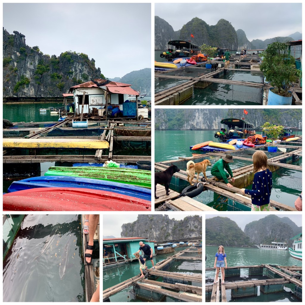 Neste post på programmet var besøk til en lokal fiskeoppdretter. Anlegget må ikke forveksles med et typisk norsk oppdrettsanlegg. Merdene var laget av enkle garn festet i stokker med isoporkuber for å folde det flytende. Disse stokkene utgjorde «gangveiene» rundtom på anlegget. Dette var eneste måte å bevege seg rundt på, noe som gjorde det å bevege seg rundt her nokså spennende. Og bare for å gjøre det litt ekstra spennende fikk vi beskjed om å holde oss unna den oransje hunden, den var ikke så særlig glad i mennesker. Flere av artene de hadde var nokså sjeldne og ikke ment for å spises, mer for avl. Den største veide rundt 100kg. Meningen var at den skulle komme opp til overflaten da vi hev mat uti til den, men den var tydeligvis mett for det var ikke allverdens vi så til dem. Heldigvis var enkelte av de andre litt mer futt og fart i. Det er fryktelig rart å tenke på at dette er hele livsverket for enkelte mennesker. De til og med bodde på anlegget.
