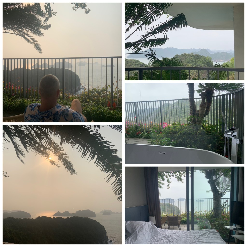 Cat Ba er Vietnams nest største øy og ligger helt sørvest i Halong Bay, 160 km vest for Hanoi. Fra fastlandet måtte vi i båt i drøye 10 minutter. Deretter var det nye 30 minutter i buss før vi endelig var fremme. Motorveien fra Hanoi og ut til sjøen var overraskende fin, det samme gjaldt ikke kaiområder og «fergen»😄 Men vi kom helskinnet over, og hotellet var absolutt verdt turen, det var superfint🤩 Eneste aberet var all tåken som gjorde det vanskelig å se alle småøyene rundt oss. Men det går seg forhåpentlig til.