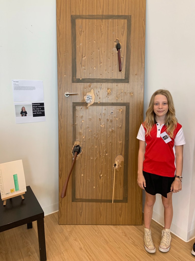 Temaet hun hadde valgt var vold i hjemmet, med særlig forkus på barn. For å vise forskjellene rundtom i verden hadde hun sammenlignet Norge, Singapore og Afghanistan. Som illustrasjon valgte hun en dør med en øks i. Presentasjonen gjorde inntrykk på mange, etterpå kom en svært rørt pappa bort til Hans Christian og forklarte at han hadde opplevd vold i hjemmet som barn og han synes dette var et veldig viktig tema.