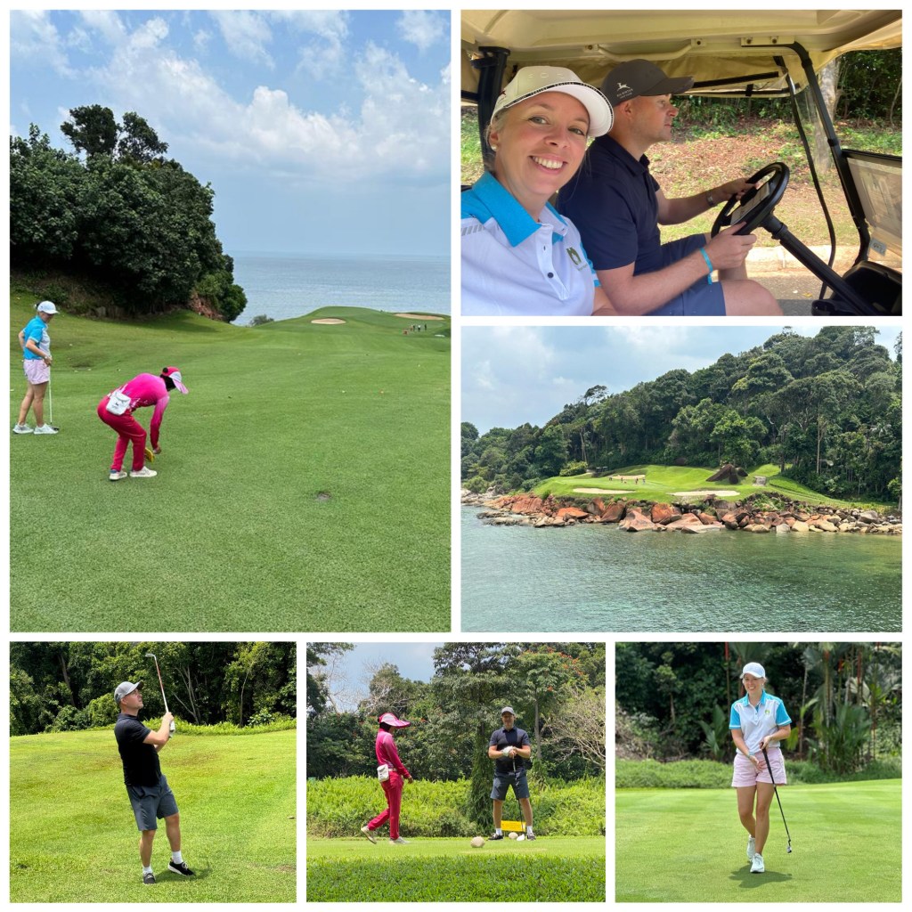 For utenom alt dette hadde de også en nydelig golfbane like i nærheten. Da måtte vi bare benytte anledningen, så dette ble min første gang med golf på bane. Med oss hadde vi en instruktør fra hotellet og en caddy, som også var betydelig flinkere å spille golf enn oss og som kom med mange gode råd😄 Det gøye her var at alle caddye ne var damer, og uniformene deres var knall rosa. Så de var ikke til å ta feil av😊 Jeg vil vel ikke strekke det så langt som å si at vi spilte veldig bra, men vi koste oss i hvert fall veldig. Så nå vet vi hva vi skal drive med når vi blir pensjonister 😁
