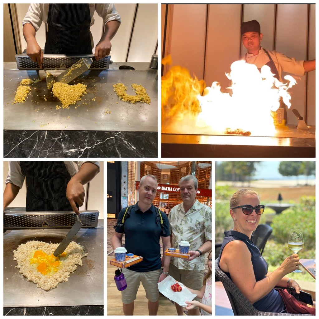 I tilknytning til hotellet var det også en golfbane. Og vi hadde jo tross alt med «barnevakter». Så da måtte vi bare benytte anledningen. For første gang gikk jeg 18 hull. Hans Christian er litt mer erfaren, han har tross alt gjort det en gang før😜 Det var en nydelig flott bane, men nokså vanskelig med smale baner og mye vann i mellom alle. Og bare for å være sikker var det krokodiller i dammene. Så å lete etter baller der var uaktuelt! For å si det sånn – det røk til en anselig mengde baller. Dessverre fikk vi aldri sett krokodillene. Men det var et yrende dyreliv ellers med mange fine fugler, otere og aper som prøvde å stjele sekken til Hans Christian i et øyeblikks uoppmerksomhet😅 To dager senere var Hans Christian og Roar og spilte 9 hull. Roar sin første gang på en golfbane. Ryktene sier at han spilte bra, og jeg tror det gav mersmak😃
