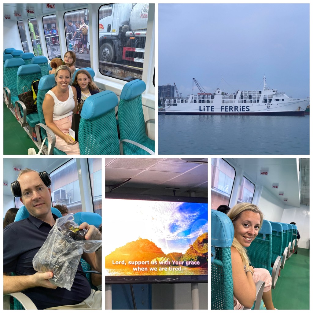 Filippinene består av over 7000(!) øyer og er hjem for nærmere 120 millioner mennesker. For å komme hit måtte vi fly 3,5 timer nordøst fra Singapore, og landet i byen Cebu. Cebu ligger på naboøyen til Bohol, så for å komme helt frem kunne vi enten gå for fly eller bil og båt. Vi gikk for det siste, noe som innebar først 30 minutter i bil, så 1 time og 45 minutter på båt og deretter 40 minutter i bil igjen. Da vi endelig kom frem var det blitt kveld og mørkt. Men alt i alt gikk turen veldig fint, det var minimalt med venting både i forbindelse med fly og båt, og sjåførene vi hadde avtalt med på forhånd at skulle plukke oss opp på flyplassen og båtterminalen var begge på plass. Folk er generelt veldig hyggelige og behjelpelige, og trafikken var overraskende rolig. Hotellet var supert, med fine rom, kjempegod mat og masse aktiviteter for jentene. Så langt vil jeg si at det var vel verdt reisetiden.