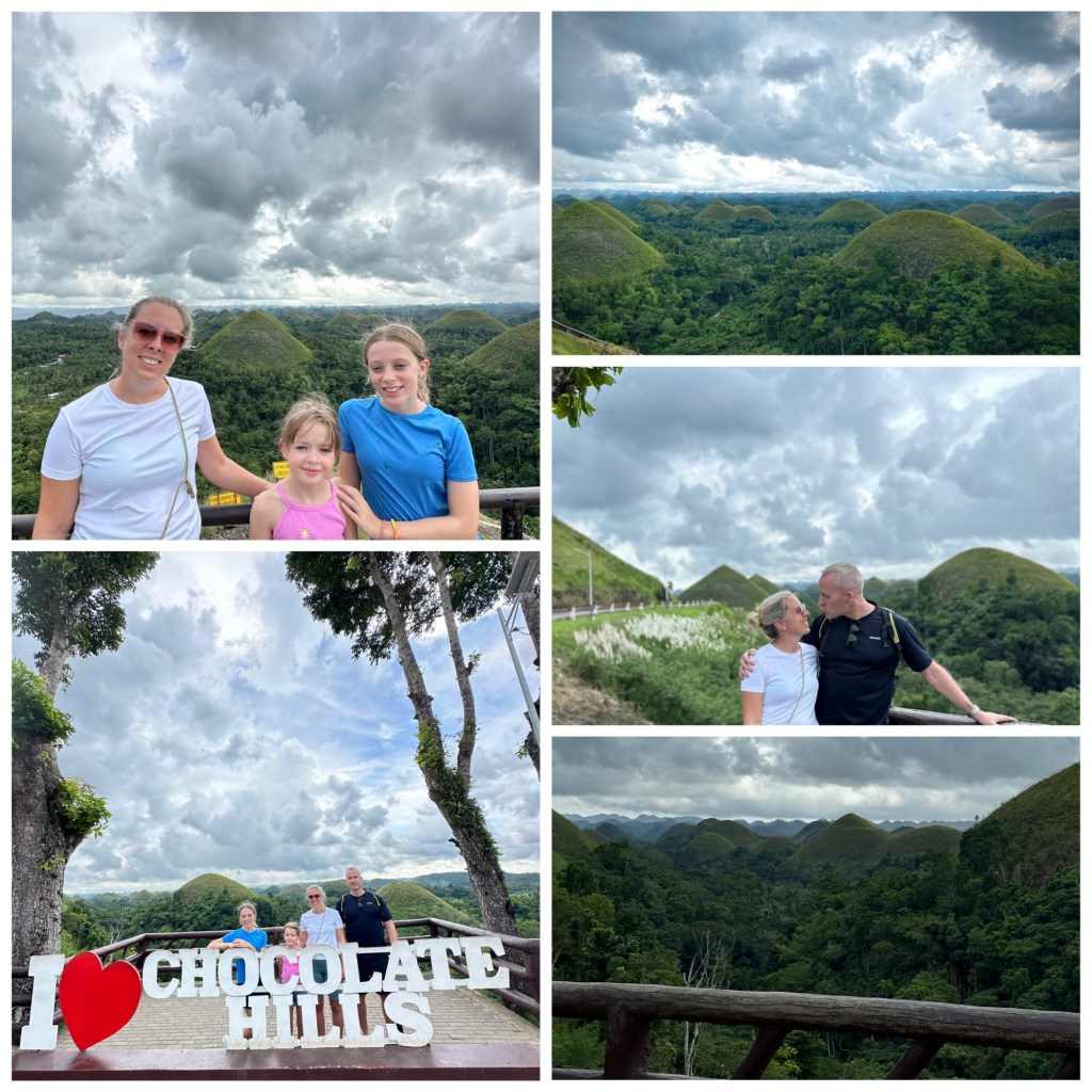Etter atv’ene stor Chocolate Hills for tur. Navnet har de fått fordi de deler av året har samme farge som sjokolade grunnet brunt gress, ikke fordi det dyrkes noe kakao eller lignende her. Fordelt på noen få områder på Bohol finnes det mer enn 1.000 av disse særegne, små fjelltoppene. Toppene består av kalkstein og fikk sine karakteristiske former da dette landskapet for lenge, lenge siden lå under vann og strømmer eroderte havbunnen.