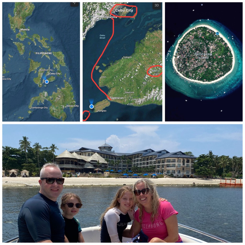 Igjen var det tidlig opp og ut, men i dag var bil byttet ut med båt. Målet var øyen Balicasag like sør for hvor vi holder til (se bilde av kart under). Hotellet har en egen båt som kan leies med mannskap, og en av turen de anbefalte var akkurat denne øyen, nettopp fordi den skal være så fin å snorkle ved.