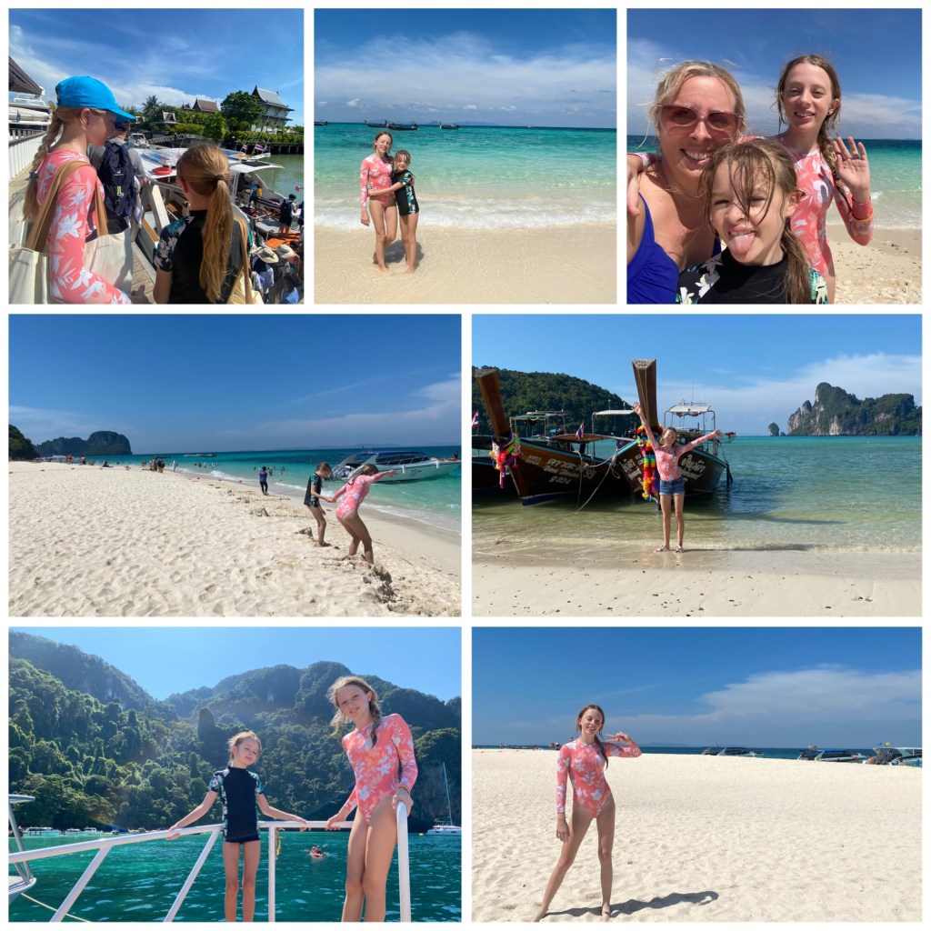 Etter x antall ferier fikk jeg endelig besøk Phi phi øyene også. Hans Christian var dratt tilbake til Singapore, og farmor og farfar ønsket en rolig dag, så da ble det jentene og meg som dro på tur. Vi ble hentet tidlig på morgenen og komme ikke tilbake før solen var gått ned på kvelden. Da var vi fint ferdig alle tre. Men turen var helt super. Vi hadde mange stopp på veien, hvor vi fikk snorklet masse, badet på nydelig strender, hilst på apekatter og mye mer. Jeg er glad for at jeg endelig fikk rotet meg til det😃