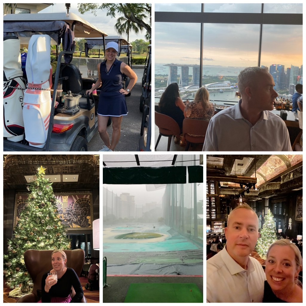 Når man har «barnevakter» på besøk må jo mor og far benytte anledningen, så Hans Christian og meg hadde oss noen kvelder hvor det bare var oss to. Vi hadde en kveld på driving rangen (i et forferdelig uvær😅), i forkant av en dagstur til Malaysia for å spille golf, og ikke minst en bedre middag på fin restaurant etterfulgt av et par drinker på Atlas bar😁🤩