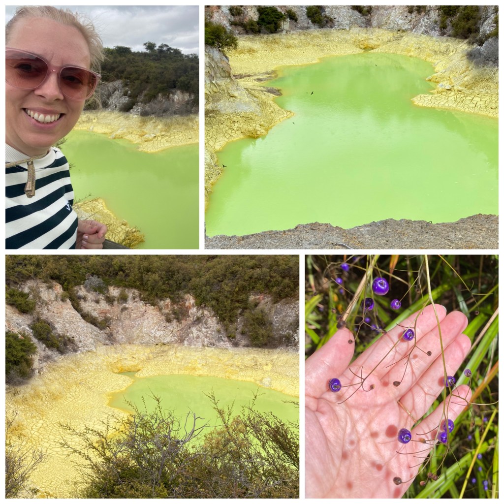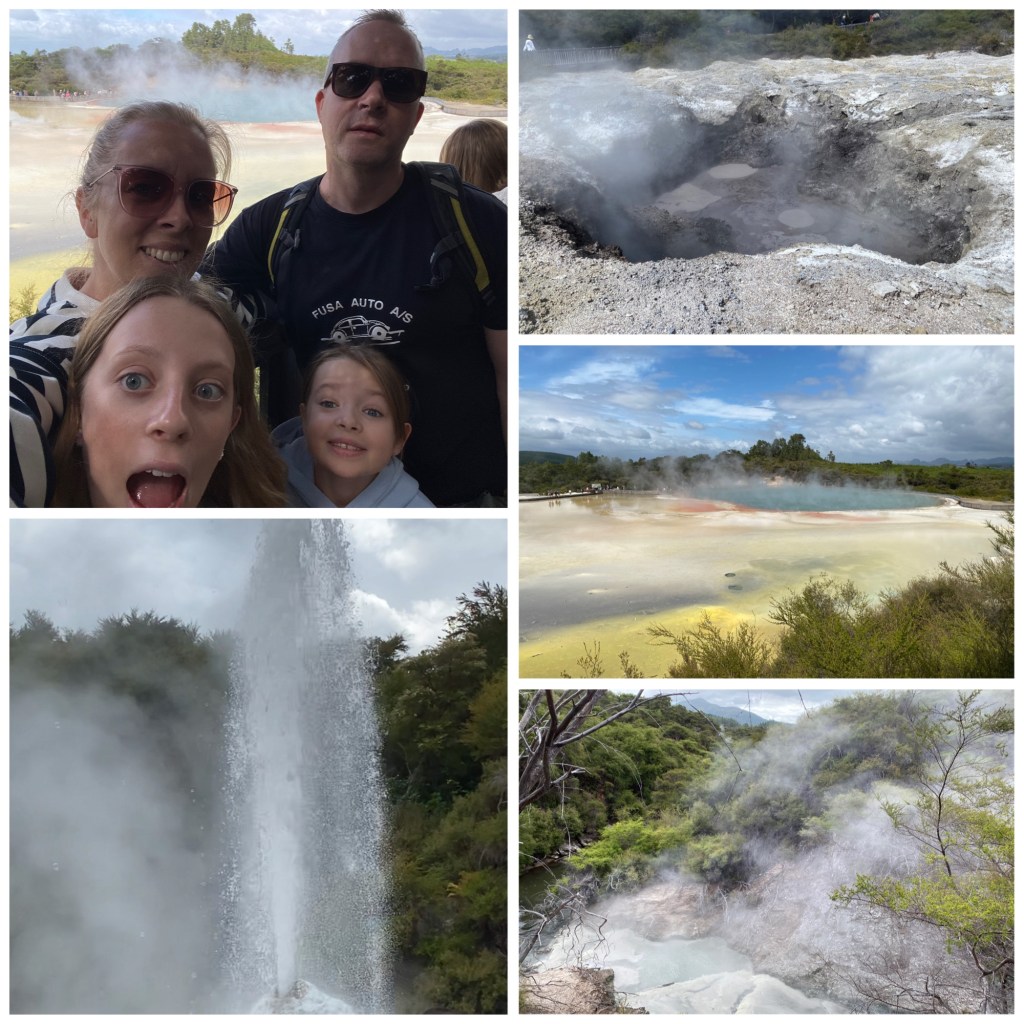 Ny dag betyr mer kjøring. Dagens første stopp var en geysir som har utbrudd en gang om dagen, Lady Knox. Vi var veldig fascinert over at den har utbrudd hver dag kl. 10.15. Kan den klokken liksom?🤪 Men det viste seg at den kan ikke det. Den blåser ut når det puttes masse såpe oppi som trigger den. Denne finurlige fremkallingen av utbrudd ble oppdaget på 1800-tallet da fanger som holdt til i området brukte de varme kildene til å vaske klær i og med et uhell mistet et såpestykke ned en av kildene. Siden har det vært en attraksjon. Jaja, den var nå kul likevel😄