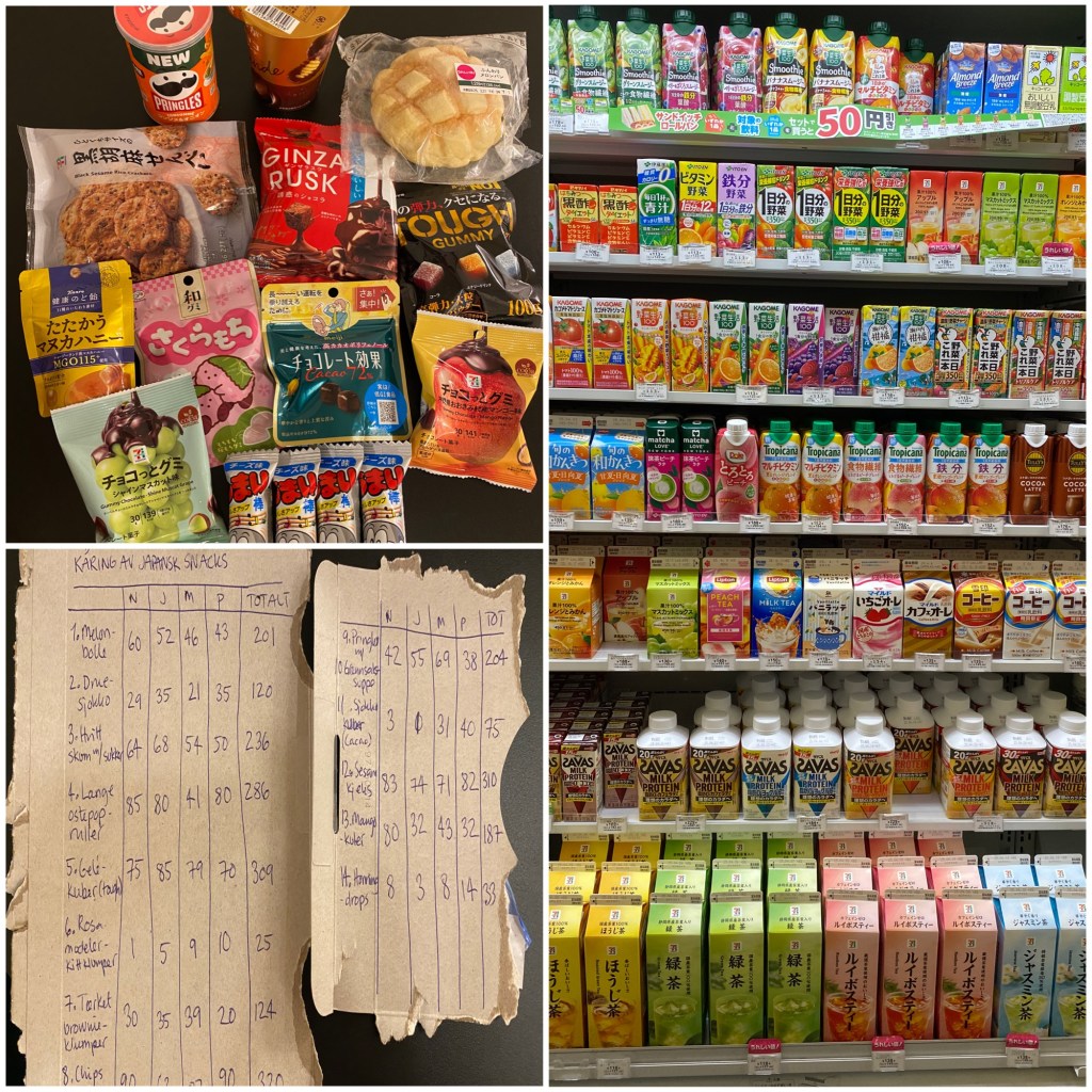Vi avsluttet kvelden med en liten shopping runde på nærbutikken. Her kjøpte vi masse rart godteri, og så gikk vi hjem og smakte oss gjennom alt. Dommen over de ulike «delikatessene» kan dere se nederst her. Ikke alle var like stor suksess, men vi hadde det i hvert fall veldig gøy. Nora holdt nesten på å le seg i hjel😄